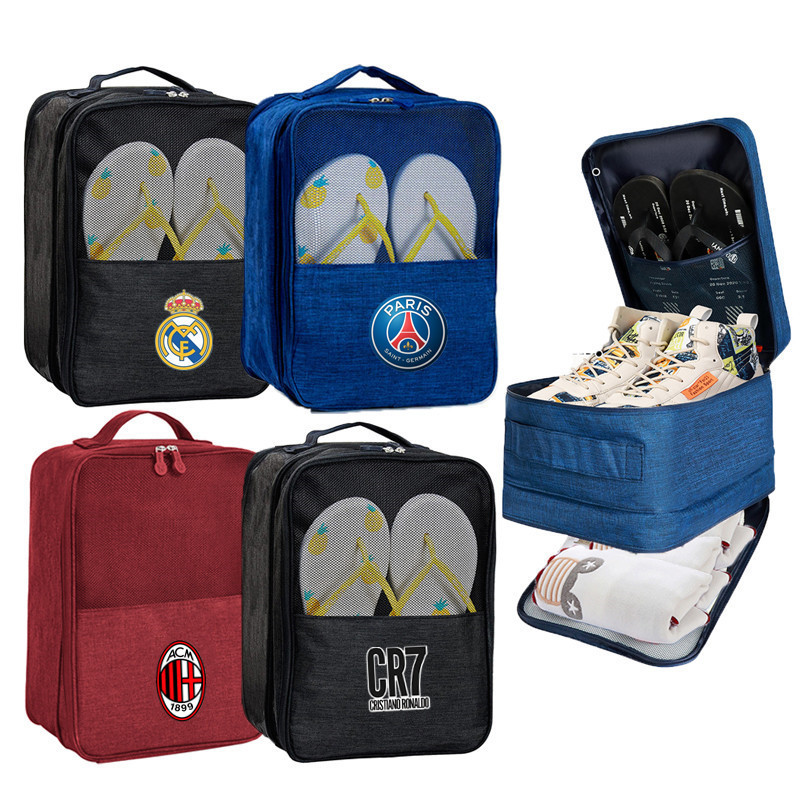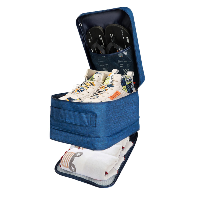 This storage bags are made of water-resistant oxford, peva lining and mesh fabric. Moreover it’s padded with EPE foams inside to protect your shoes. It effortlessly slides onto your luggage handle with a Luggage Trolley Sleeve.