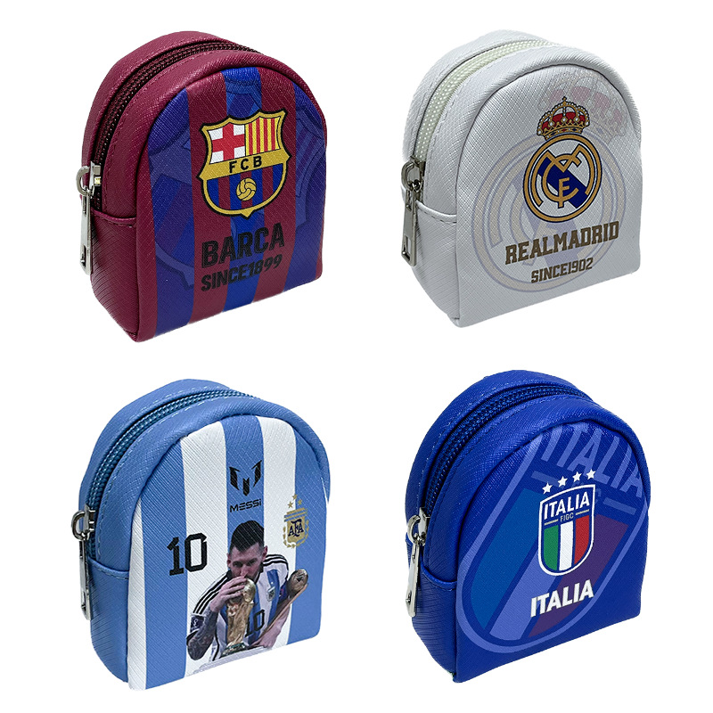 This football coin purse is made of PU leather material. There are different types of soccer clubs printing designs for your choice. It is a good gift for soccer fans to be used to store small items such as headphones, keys, change, etc.